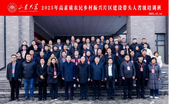 2025年12月13日至19日,由山东省农业农村厅主办、山东大学承办的2025年高素质农民乡村振兴片区建设带头人省级培训班(第一期)在山东大学洪家楼校区顺利举办。山东省农业农村厅乡村建设促进处处长刘迎增出席开班仪式并致辞,来自全省各地市的50名乡村片区党组织负责人及村党支部书记参加培训。